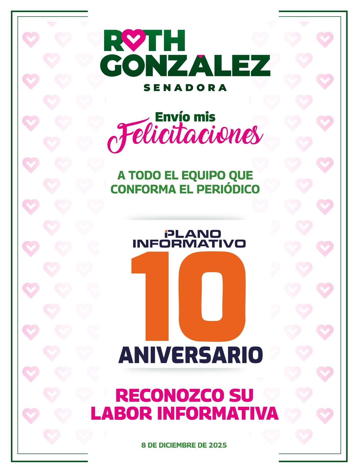 Hace una década iniciamos este camino con la convicción de informar de manera veraz y confiable, respeto por nuestros lectores. Hoy, agradecemos tu confianza, tu tiempo y tu voz, que han sido la fuerza que impulsa cada edición.