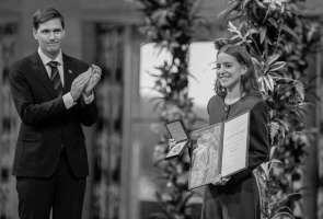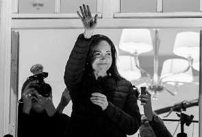 MARÍA CORINA MACHADO SALUDA EN OSLO A SUS SEGUIDORES