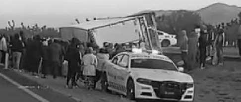 Se registró un aparatoso accidente en el kilómetro 132 de la carretera a Matehuala, donde un camión terminó volcado cuando se desplazaba con dirección a la capital potosina, generando un importante congestionamiento vehicular en la zona.