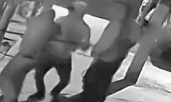 Las imágenes muestran a cuatro sujetos forzando con barras metálicas la puerta de un