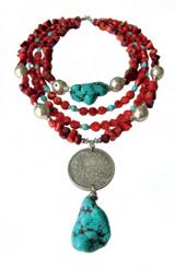 7. Collar coral natural rojo y piedra turquesa Precio consulatar en tienda. Stare Vie The Store.