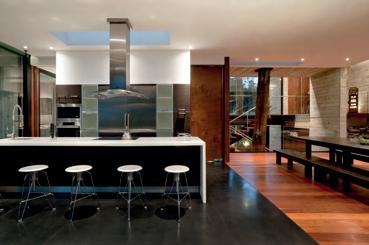 La cocina, que responde a un lenguaje contemporáneo, forma parte del área social, permitiendo que todas las actividades cotidianas se den en diálogo directo con el exterior. El