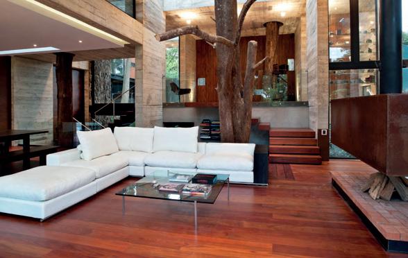 A partir de esa matriz, se diseñó́ una casa donde tres troncos permanecen dentro y en cada ambiente, se garantizó l a presencia de por lo menos un árbol visible. La propiedad, que obtuvo el Premio a la Excelencia de Cementos Progreso, cuenta con tres habitaciones secundarias y una principal. También, en un volumen independiente sobre el área de garaje, se ubica un espacio que originalmente funcionó como estudio de fotografía y que hoy, es un espacio de juegos y reuniones familiares.