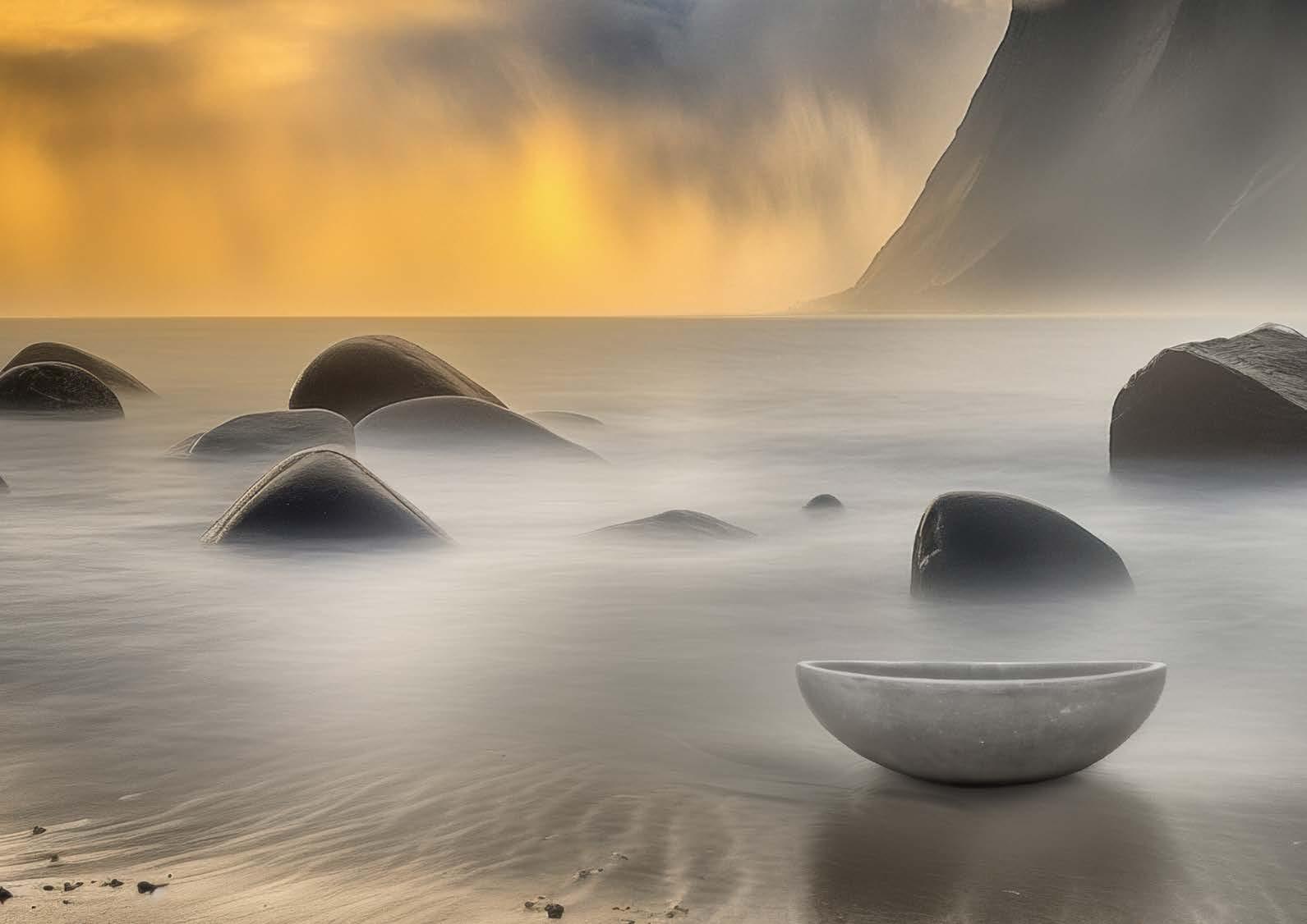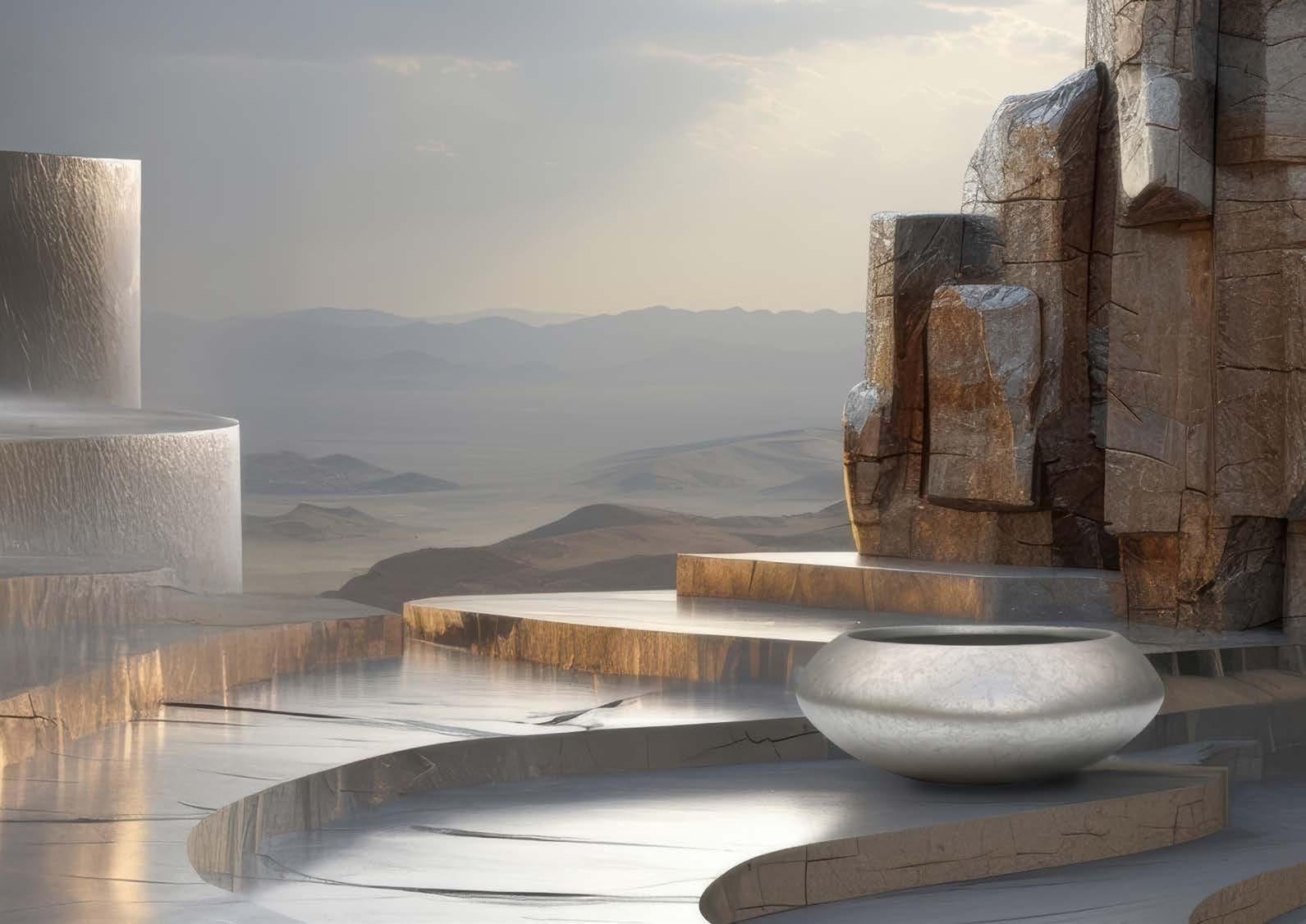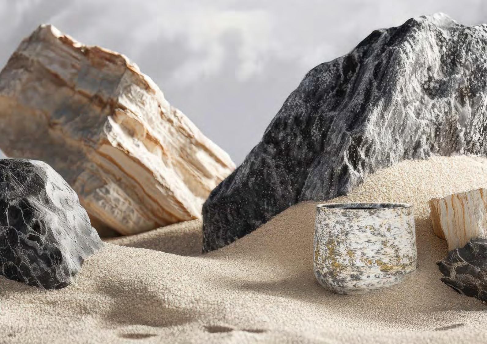 Rugged as stone, with powerful textures inspired by nature.