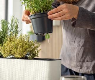 Direct planting in the planter. After the growing-in phase your plant will receive all the water it needs from the water reservoir.