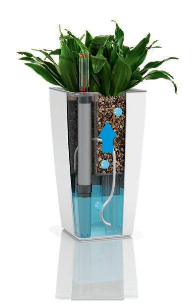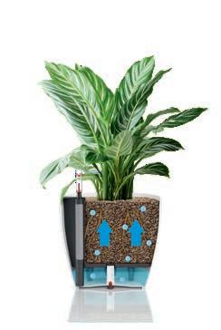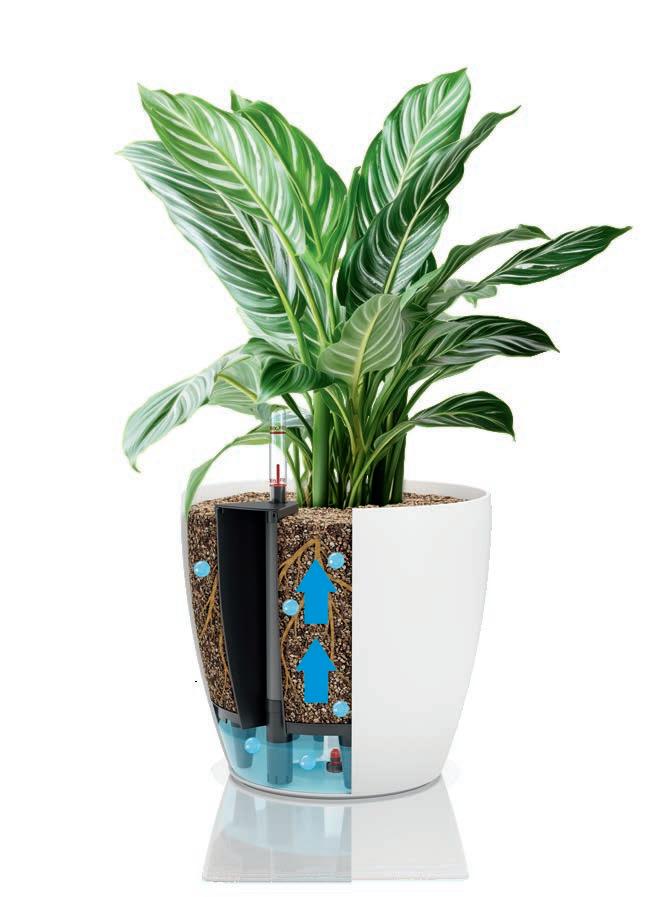 The secret to beautiful plants is a well-functioning self watering system. But what makes the Original LECHUZA self watering system different from other systems? The answer is the optimum mix of water, substrate and plant roots. The perfectly balanced plant volume and water reservoir system creates the best conditions for plant growth.