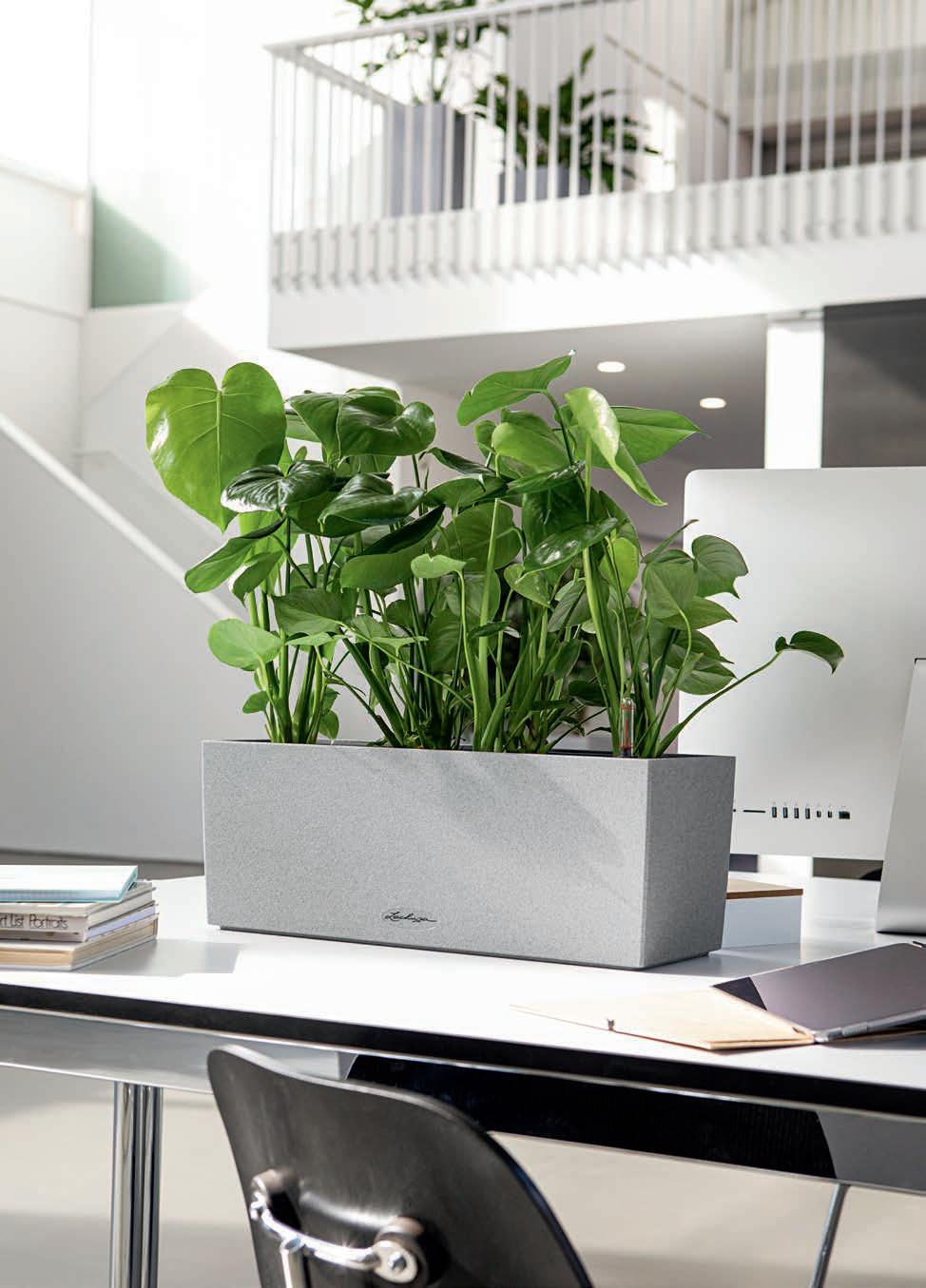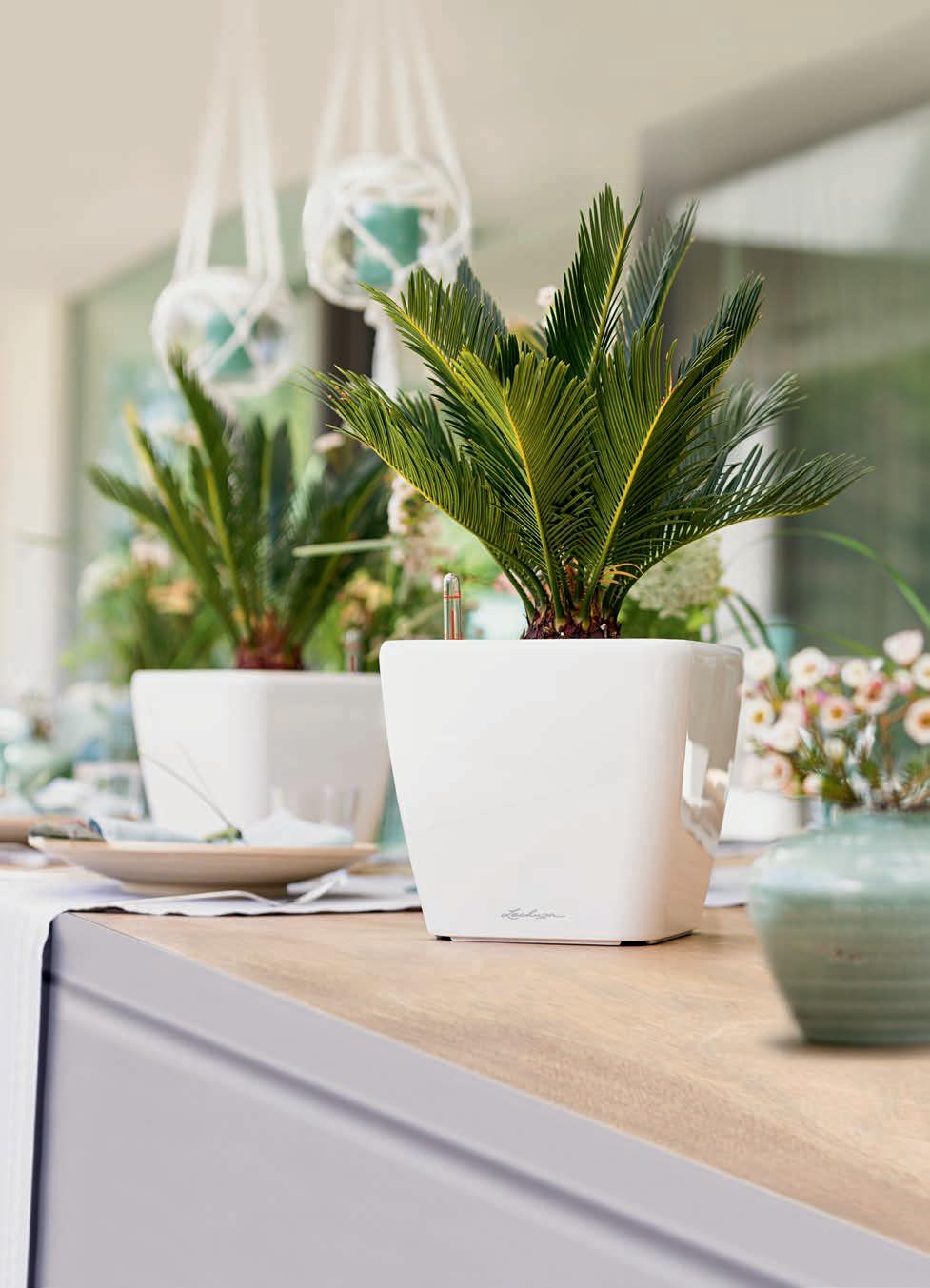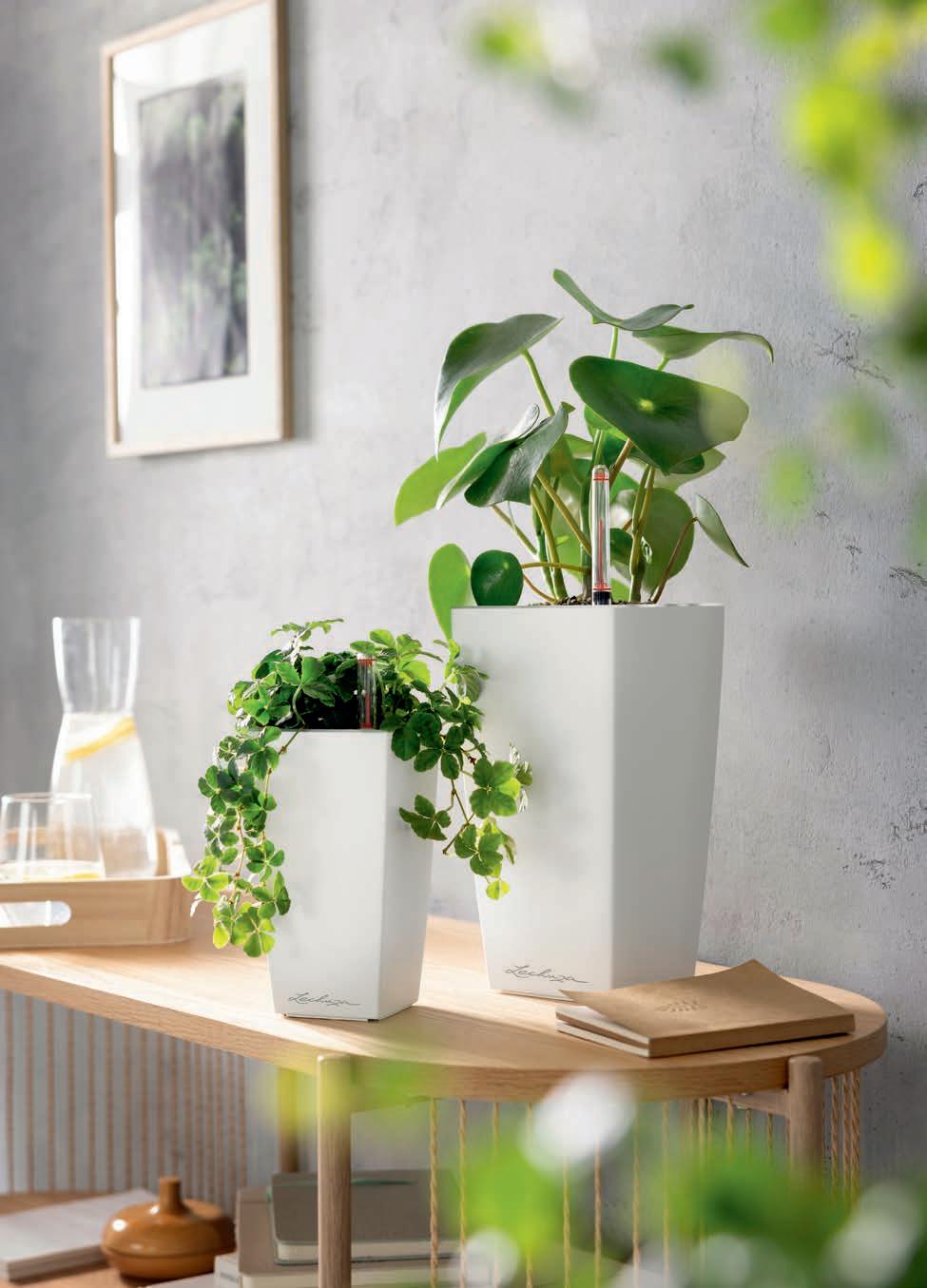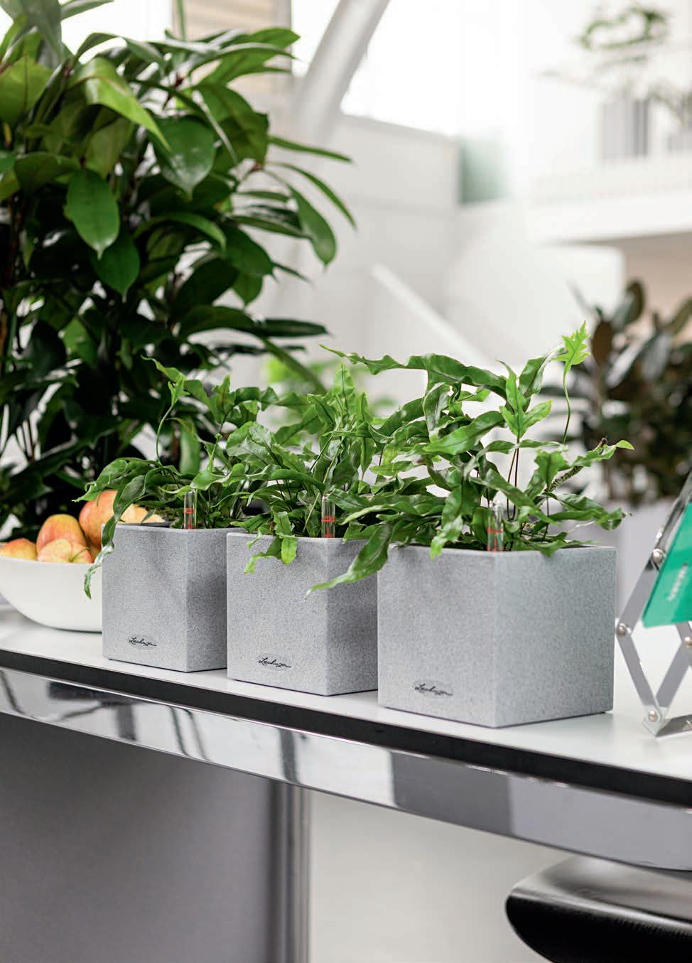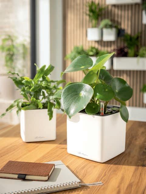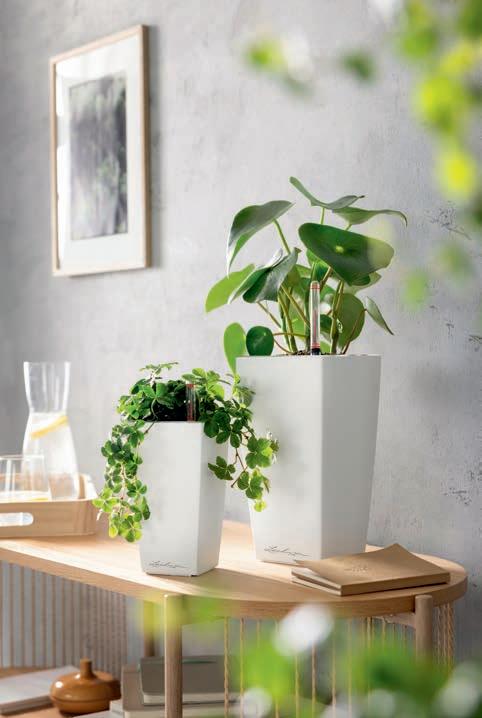 Table planters such as DELTINI, MINI-CUBI and DELTA now shine in a modern on-trend finish that blends harmoniously into any setting. Combined with the triedand-tested LECHUZA self watering system, they are not only visually appealing but also ensure optimal plant care. Tables and windowsills are transformed into stylish green decorative elements.