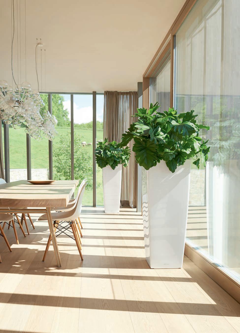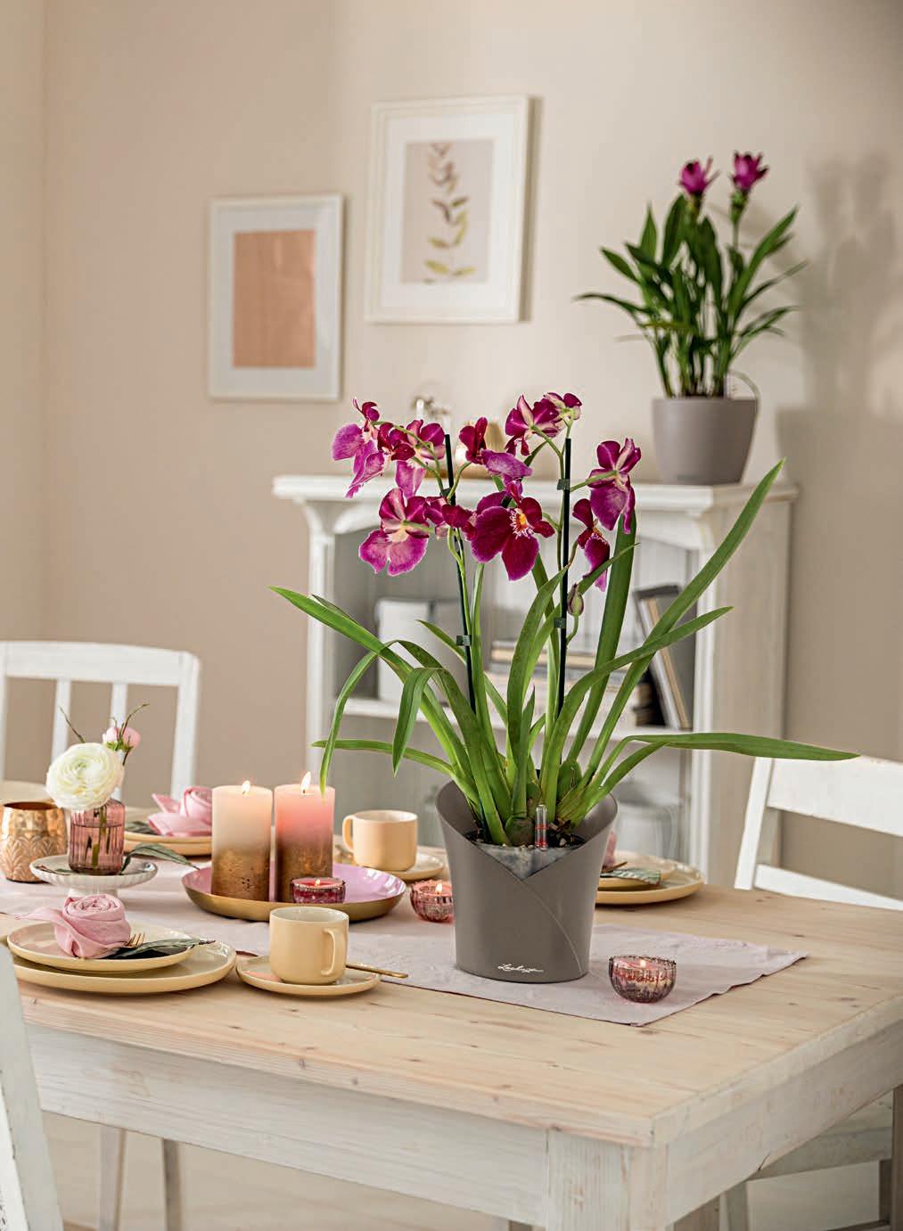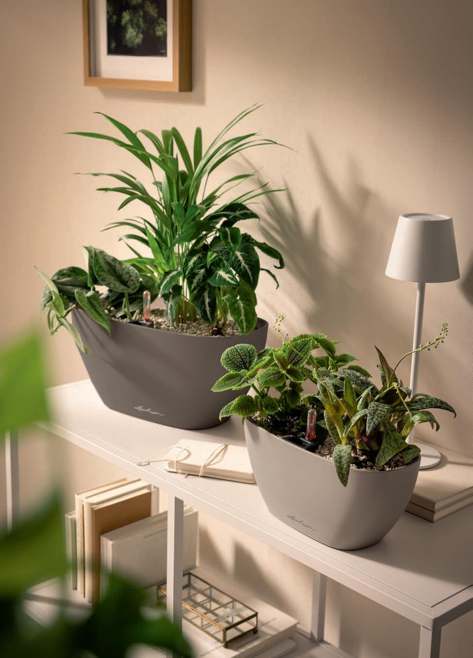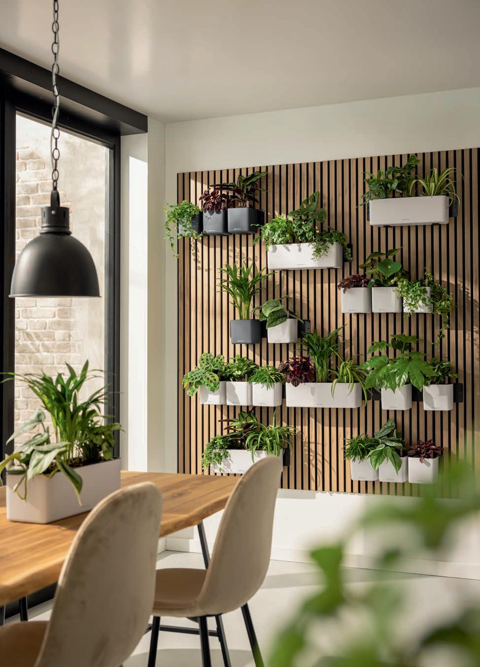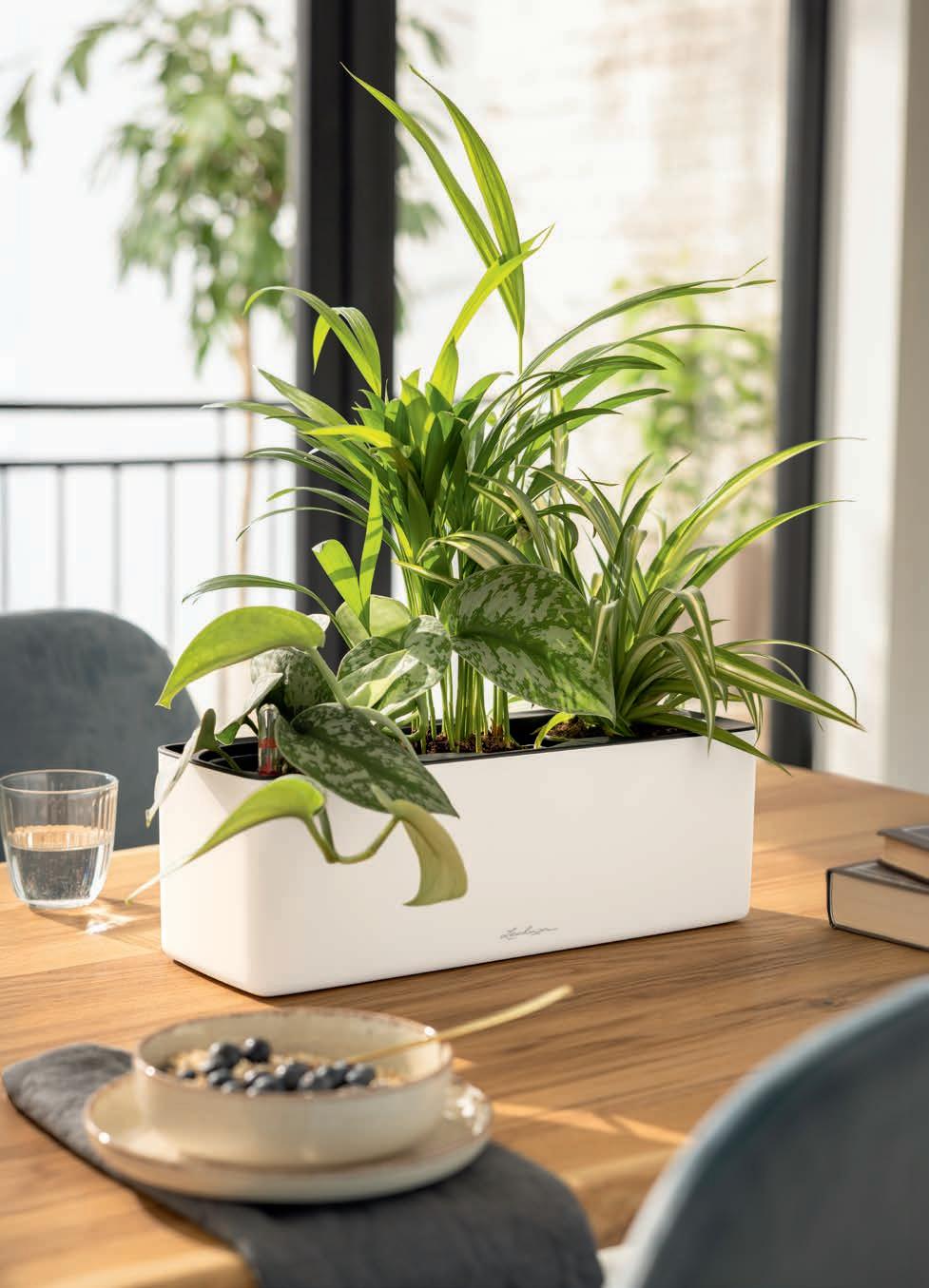 Table planters such as DELTINI, MINI-CUBI and DELTA now shine in a modern on-trend finish that blends harmoniously into any setting. Combined with the triedand-tested LECHUZA self watering system, they are not only visually appealing but also ensure optimal plant care. Tables and windowsills are transformed into stylish green decorative elements.