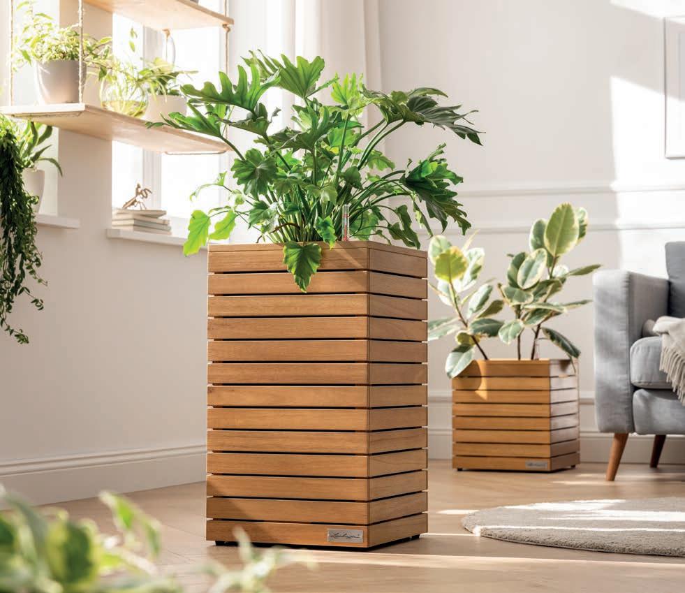 PALO brings nature into your home in style: made of solid, FSC®-certified eucalyptus wood, PALO has a beautiful distinctive grain. The clean lines of the wooden planters create a harmonious look in any setting, while the integrated LECHUZA self watering system keeps your plants in good health. The interchangeable plant liners made of recycled plastic make plant care easy. As a decorative stand-alone piece, functional room divider or small elevated vegetable patch, PALO brings a natural look to your home or garden.