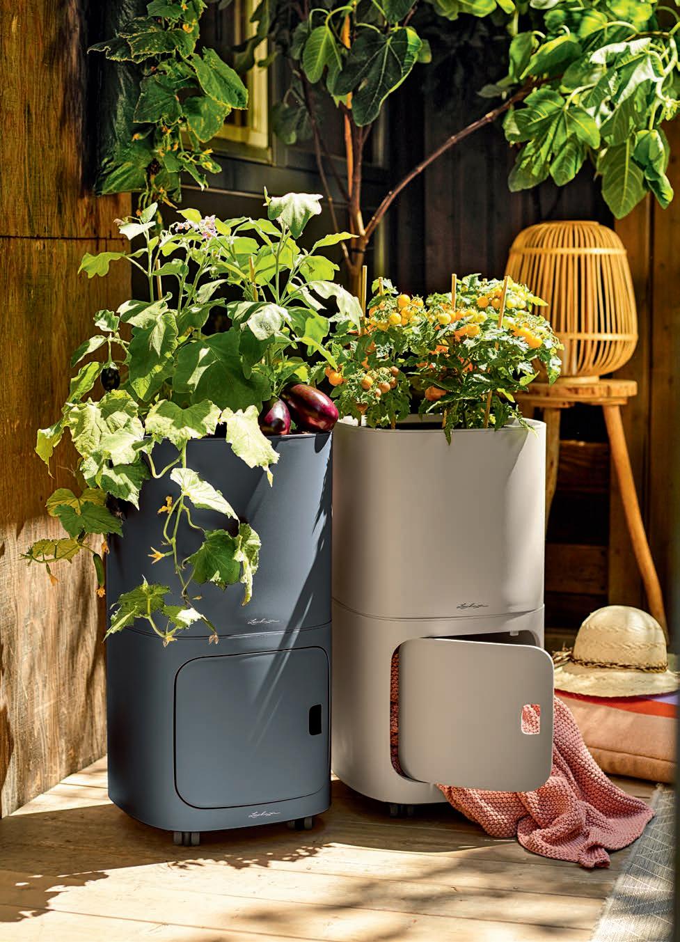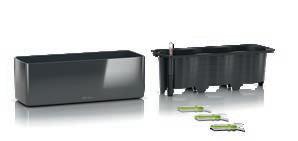 Depending on the type of planter, either open or closed planter liners are integrated into the design. With closed liners, typically used with column planters, the water reservoir is integrated into the liner. This makes the liners easy to move without making a mess, and they can be used for precultivating plants too. With open liners, the water reservoir is between the separator and the outer planter. Roots can grow out of the liner and can easily be trimmed back. The liner is also easy to handle and can be cleaned under running water.