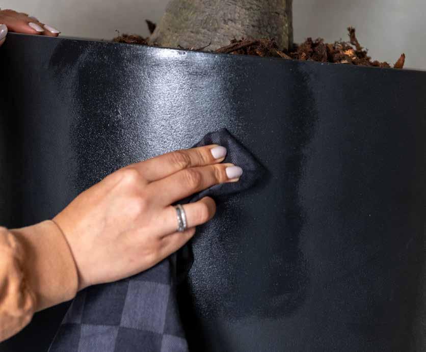 The black fiberstone planters from the Natural and Heritage collection (color code -01) can be treated 2 to 4 times per year with our maintenance wax. The maintenance wax keeps your planters protected and helps maintaining its black color. For more information see page 179.