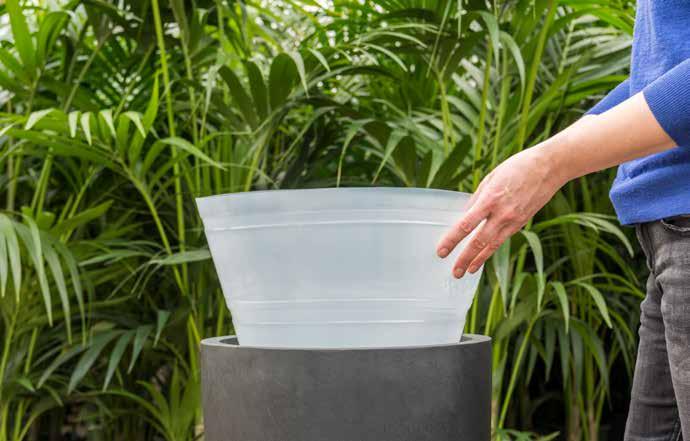 The pot inserts are made of flexible plastic. The inserts are featured with special rims so you can easily cut into the desired height. We offer various sizes and therefore suitable for every pot size.