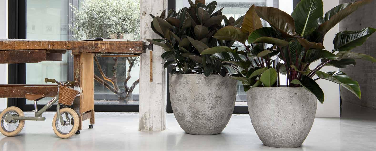 Stone is of course a hard product, what makes the pots really firm and high of quality. Therefore, fiberstone planters, flower pots and pots last a long time. Due to the glass fiber, the pots are lightweight and easy to move. That, in combination with the fact that fiberstone is easy to maintain, makes the pots truly user-friendly.