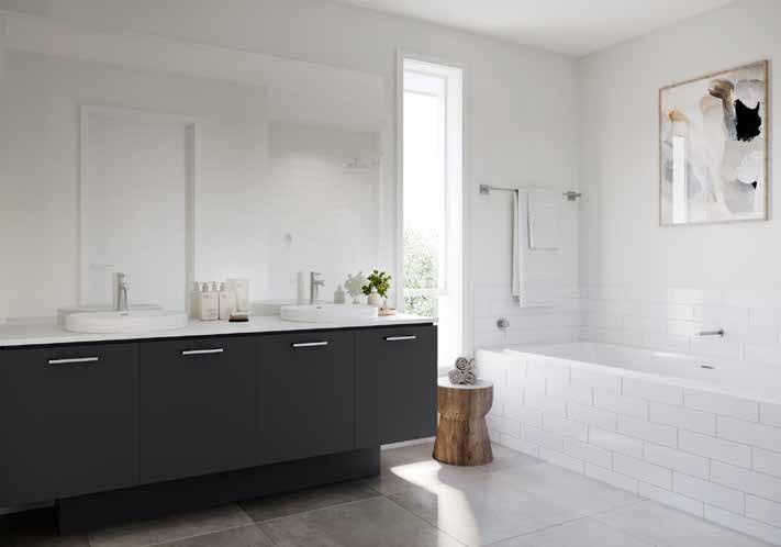 7. Bathroom Cabinetry – Polar White Silk | 8. Bathroom Wall Tile – Unit Silver Grey 250x400 | 9. Bathroom Floor Tile –