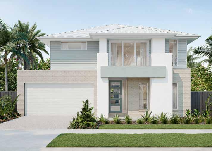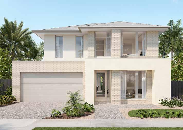 1. Brick – Montauk | 2. Roof – Surfmist | 3. Windows – Pearl White | 4. Garage Door – Surfmist 5. Render/Cladding 1 – Compton | 6. Render/Cladding 2 – Chalkstone Half 7. Render/Cladding 3 – Colorbond Surfmist