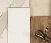Kitchen Overhead Cabinetry – White Painted Wood Natural | 5. Kitchen Glass Splashback – Frontier | 6. Bathroom Benchtop – White Burst 7. Bathroom Cabinetry – White Painted Wood Natural | 8. Bathroom Wall Tile – Unit White Satin 200x400