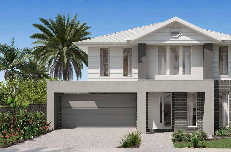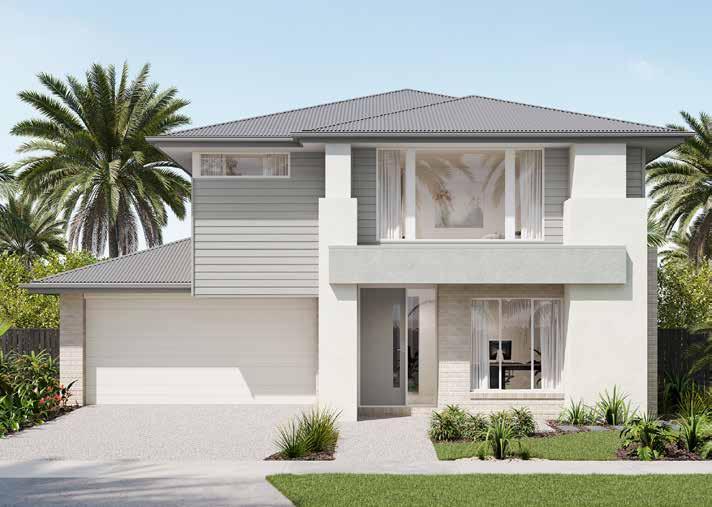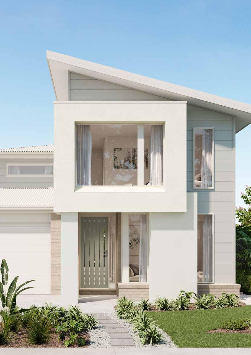 1. Brick – Driftwood Grey | 2. Roof – Shale Grey | 3. Windows – Pearl White | 4. Garage Door – Surfmist 5. Render/Cladding 1 – Miss Universe | 6. Render/Cladding 2 – Rotunda Stone 7. Render/Cladding 3 – Salinger