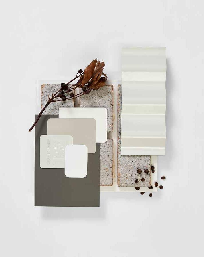 7. Bathroom Cabinetry – Blackened Legno Natural | 8. Bathroom Wall Tile – Unit White Gloss 250x400 | 9. Bathroom Floor Tile – Belga Grey 600x600 10. Main Floor Tile – Belga Grey 600x600