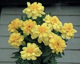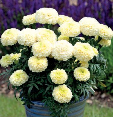 117018 WHITE GOLD MAX Tagetes erecta mit fast weißer Blüte. Wüchsig, ähnlich wie Big Top, sehr üppige Blüte. Seite 53
