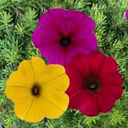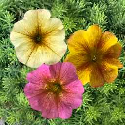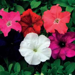 Diese kompakten Petunien mit den weißen Blütenrändern spielen in puncto Farbton und Pflanzenqualität in der obersten Liga. Erhältlich als Mix oder in Einzelfarben.