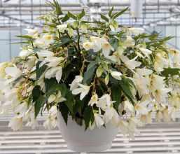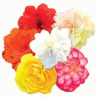 Die Begonia Thuberhybrida Joy hat große Blüten und entwickelt sich besser als die klassische Non Stop. Durch ihre hängenden Triebe macht die Pflanze großen Eindruck in Ampeln und Töpfen an nicht zu sonnenexponierten Standorten. Der Mix besteht aus sieben Farben.