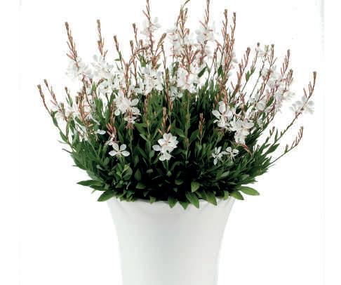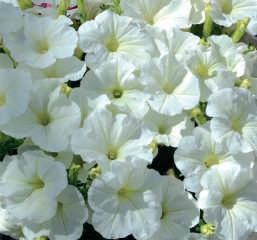 La prima pentas da seme a portamento ricadente con pianta a sviluppo vigoroso e ricca fioritura per tutta l’estate. In arrivo altri colori ma per il momento solo il bianco è commerciale.