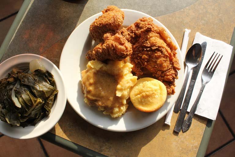 “Fried chicken, potato salad or mashed potatoes, Mac and cheese, spicy collards, corn bread.” - Justin De Leon
