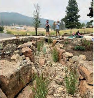 from Helena, the owners of this historic cabin home wanted to accentuate its natural surroundings, especially a nearby aspen grove and native grass meadows. Started in 2019, the landscape has a heavy emphasis on natural stone and native plants, including a groundcover matrix using about 2,000 native grass plugs as well as some seeded areas.