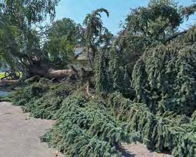 and dry conditions which limit their growth and density. In addition, when the trees in the lawn are being watered, there is no incentive for the tree to extend its’ roots to collect water, as there is in the forest. That extension of roots make forest trees much stronger and more resistant to wind throw than the trees in the lowlands. Regular inspections and selective trimming by certified arborists to reduce the density of our Spruce trees would go a long way to prevent the catostrophic damage we saw in July.