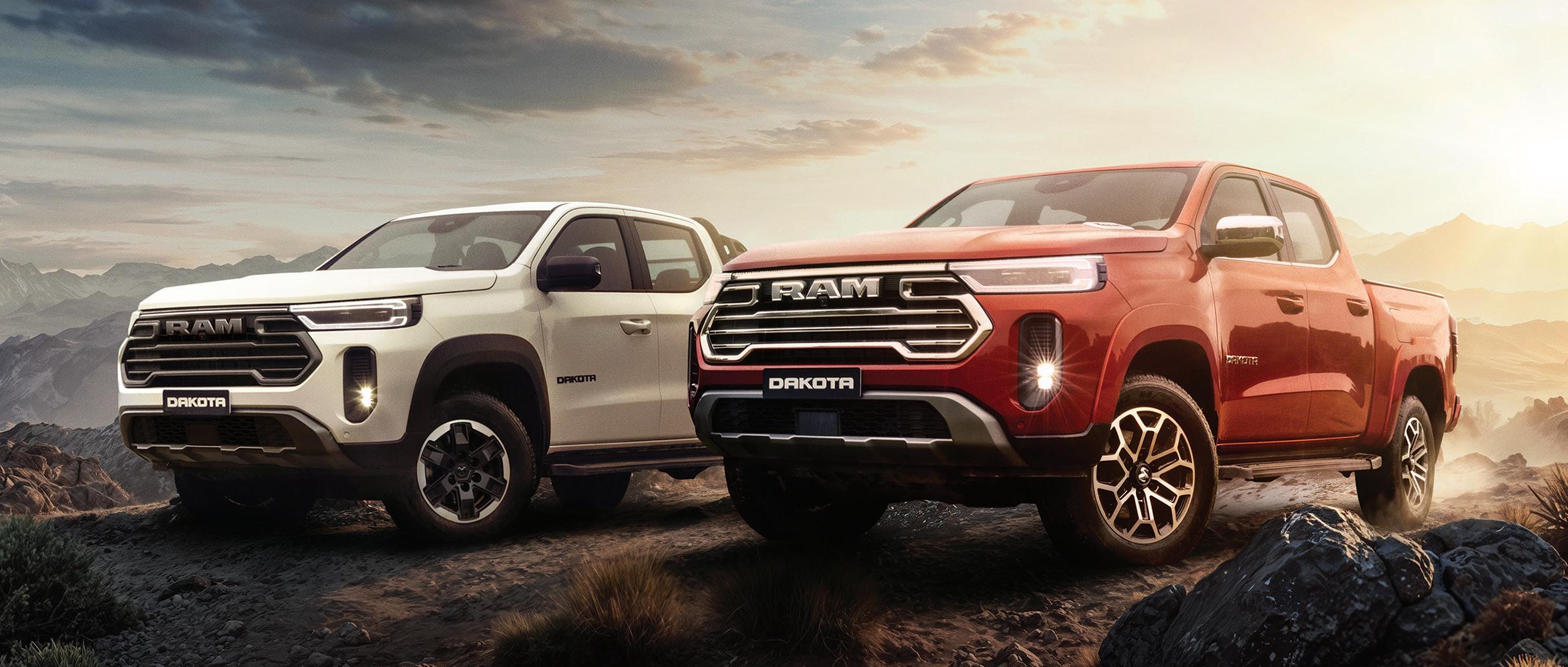 A Dakota é oferecida em duas versões: Warlock, com visual e características mais voltadas para o off-road, como pneus de uso misto nas medidas 265/65 com rodas de liga leve de 17” e acabamentos escurecidos, além de ser a única equipada com Rambar, o santantônio exclusivo da Ram; e Laramie, que traz pneus 265/60 com rodas de liga leve diamantadas de 18”, os cromados que já são tradicionais em uma Ram e uma barra frontal de LED exclusiva que une os faróis. Sob o capô de ambas as versões está o motor 2.2 turbodiesel, de 200 cv de potência e 450 Nm (45,9 kgfm) de torque, que atua em conjunto com um câmbio automático de oito marchas. Com esse conjunto, a nova Ram Dakota é capaz de rebocar até 3.500 kg e carregar 1.020 kg, com a caçamba comportando 1.210 litros. O sistema de tração é 4x4 Auto, que conecta automaticamente o eixo dianteiro de acordo com as condições do piso, além dos modos 4x4 com reduzida e 4x2. A Dakota possui ainda bloqueio mecânico do diferencial traseiro e quatro modos de condução: Normal, Sport, Snow (neve) e Sand/Mud (areia/lama). Destaque também para a alavanca de câmbio do tipo joystick e para o freio de estacionamento eletrônico, equipamentos também presentes nas duas versões.