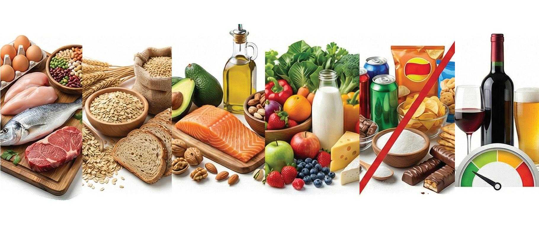 Redução de alimentos superprocessados, carboidratos refinados e açúcar extra.