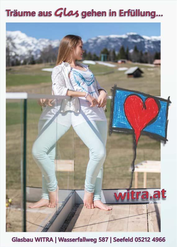 Gehen Sie mit dem Trend und schützen Sie sich vor neugierigen Blicken mit Glaszäunen und brüstungen oder optimieren Sie ihren Energieverbrauch durch einen modernen Windfang. Weitere Informationen zu Glaszäunen, Brüstungen oder einem Windfang finden Sie bei Glasbau WITRA, Seefeld, Wasserfallweg 587, unter www.witra.at oder unter Tel.+435212 4966.