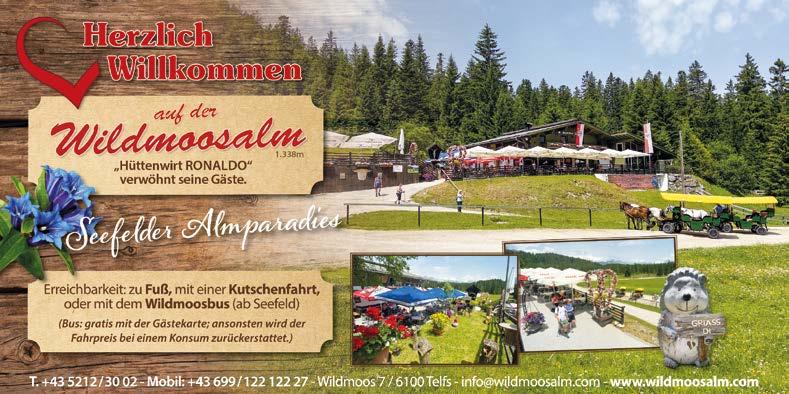 Der Tourismusverband Region Seefeld hatte die Idee, umweltbewussten Gästen ihre Anreise attraktiver zu gestalten: Mit „Freifahrt ins Urlaubsglück“ konnten sie sich ihre Fahrtkos ten im Tourismusbüro Seefeld in bar zurückerstatten lassen. So viele Gäste ließen sich abgel ten, dass der Topf in der Höhe von 60.000 Euro bald erschöpft war. „Die Aktion ist total su per, wir sind damit zum ersten Mal öffentlich in die Region gereist“, erzählen Christoph und Silke Henseler aus Essen. Auch die Hotelbetriebe haben die Aktion mit Aktionen un