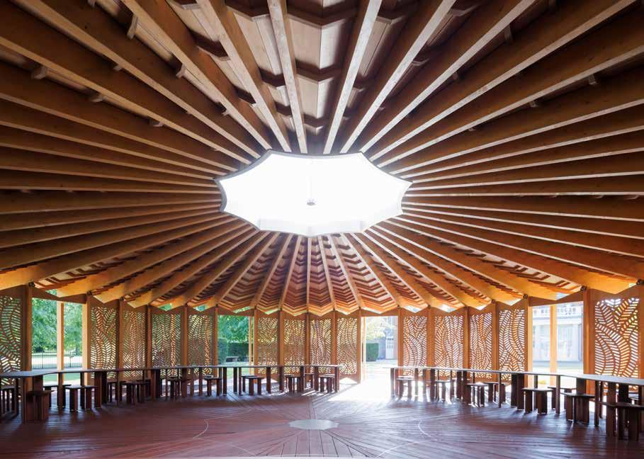 L.G. | Yes, and generosity is not about excess. Generosity is essentially for me about care – building with care and embracing people in a place, bringing warmth, intimacy and bringing people together. It's not about the ego of the architect or signature architecture; it's about allowing a deep wellbeing for people in a place. The Serpentine Pavilion, for me, exemplifies this. It's a serene environment that almost is a measure of nature around it, changing mood with the outside and allowing people to dwell around the same table. People used it as an everyday place, coming, going, writing, playing, working … In Osaka, I realized this even more. The project emerged from researching into Japanese construction know-how intersecting with Bahraini culture. It was essential that for this temporary pavilion we could reuse all the materials used in its construction, making them part of the economy again. Both Japanese and Bahraini cultures have a shared history with woodworking, boats and the sea. When I met the contractors, despite the tense construction environment at the Expo in general, they were joyful and happy to be building this project. This is very important for me. They told me they liked it and identified with it. The builders, the makers, and the community must identify with the architecture made for them. In this project, nothing is laminated; it's just wood elements put together. For expos where a lot of waste is typically created, here nothing will be wasted. The foundation of the pavilion is very light. This community feeling is not only about how you use the building but also about the process of making and constructing architecture. This dialogue often becomes invisible in our building-scapes.