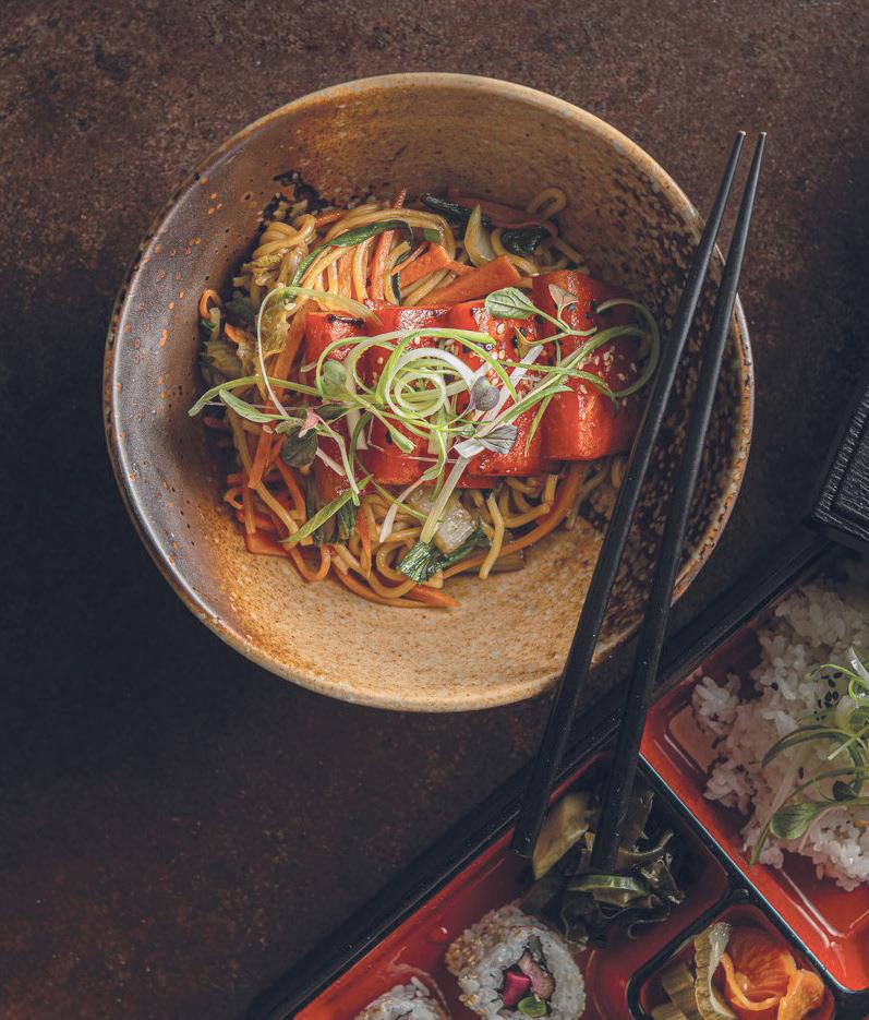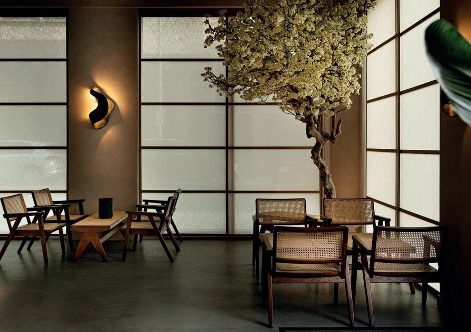 By Jasmin JetchevIt is a beautiful space. Rooted fi rmly in Japanese culture and traditions, with clean lines, neutral colours and minimalist design. The natural beige colours and dark wood furniture are complemented with strategic lighting and impressive murals, while the space is used cleverly, by having a food bar style section as well as tables for