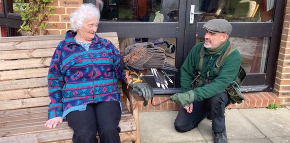 Recently the company made a pensioner’s dream come true when the bird team visited Valley Court retirement home in Caterham with some Harris hawks.