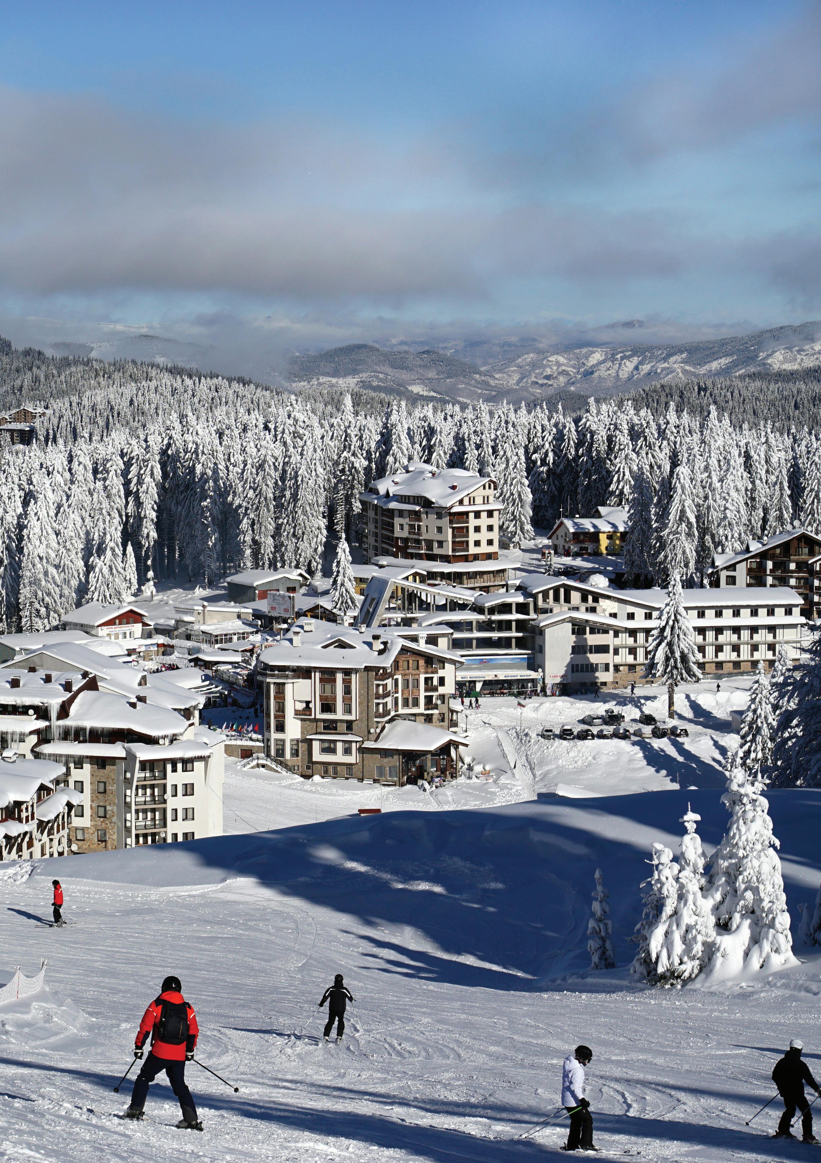 Pamporovo is the most laid-back and sunniest of the resorts. It is said to have 120 days of sunshine during the ski season. Gentle weather and soft, curvy slopes nestle in the fairytale-like Rhodope mountain, 70km from Plovdiv airport. The attractive, sheltered forested setting, non-extreme mid-winter temperatures, and child-friendly purpose-built facilities mean that Pamporovo is widely regarded as Bulgaria’s best ski resort for families, improving novices and early intermediates. You’re less likely to find stag dos and the like here and the mexanas (traditional taverns) serve excellent food and homemade wines.