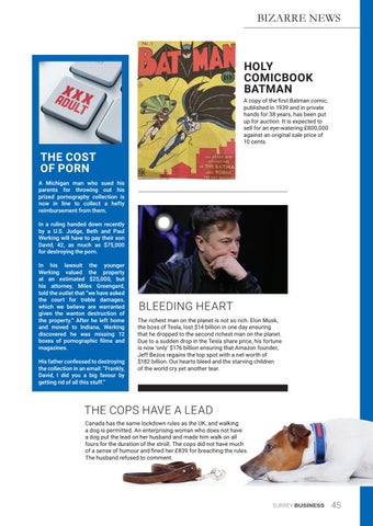 HOLY COMICBOOK BATMAN A copy of the first Batman comic, published in 1939 and in private hands for 38 years, has been put up for auction. It is expected to sell for an eye-watering £800,000 against an original sale price of 10 cents.