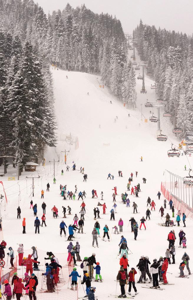Pamporovo is the most laid-back and sunniest of the resorts. It is said to have 120 days of sunshine during the ski season. Gentle weather and soft, curvy slopes nestle in the fairytale-like Rhodope mountain, 70km from Plovdiv airport. The attractive, sheltered forested setting, non-extreme mid-winter temperatures, and child-friendly purpose-built facilities mean that Pamporovo is widely regarded as Bulgaria’s best ski resort for families, improving novices and early intermediates. You’re less likely to find stag dos and the like here and the mexanas (traditional taverns) serve excellent food and homemade wines.