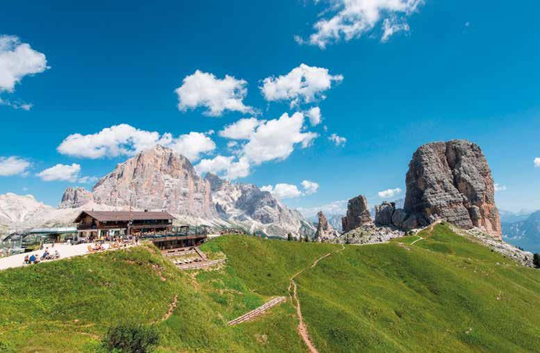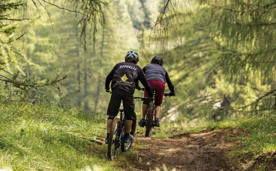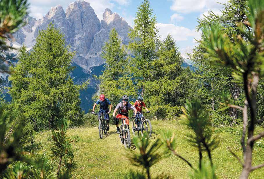 incrociando diversi punti panoramici come il Lago Ajal e le Grotte di Volpera. Una tappa imprescindibile, prima di riporre la bici, è il Cortina Bike Park Dolomiti, il nuovissimo bike park con percorsi flow, old school e tecnici di diverse difficoltà, studiati per principianti ed esperti, amanti dell’adrenalina tra i boschi di larici e abeti e prati di montagna, per un totale di ben 16 km di puro divertimento. Il percorso più lungo, con partenza dal Duca d’Aosta (2100 m), si snoda in parte lungo la pista da sci Tofanina, ed è adatto a tutti. Per i più esperti è imperdibile il Krampus Trail, il sentiero downhill che segue un tracciato naturale, quindi a zero impatto ambientale, lungo le piste Olympia, Labirinti e Vertigine, che hanno ospitato i Mondiali Cortina 2021 e saranno il palcoscenico delle Olimpiadi Milano - Cortina 2026. Infine, qualche consiglio utile. Che siano biciclette muscolari, e-bike, gravel, MTB da enduro, downhill o freeride, le due ruote sono perfette per esplorare le Dolomiti ampezzane da fine maggio a ottobre, anche grazie al Cortina Bike Pass, un biglietto da 1 o 3 giornate (o stagionale) per muoversi in libertà sugli impianti di Cortina Skiworld. skipasscortina.com