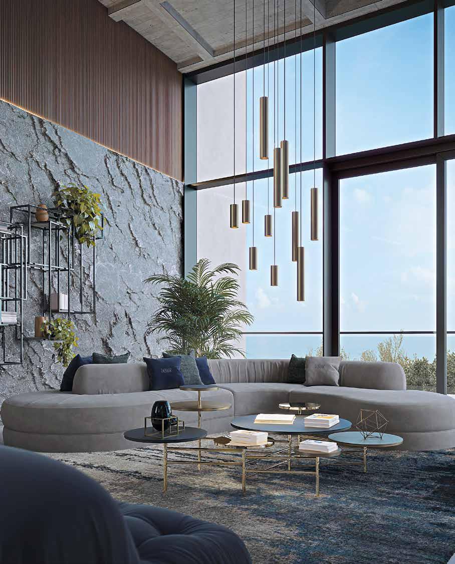 Èsulle sponde del lago Maggiore, ma potrebbe essere ovunque. Abbiamo preso spunto da questa casa incastonata nella roccia calcarea e con vista sulle isole Borromee, per suggerire uno stile sobrio e ricercato, oltre i luoghi, al quale ispirarsi. Questa è la residenza di una nota scrittrice di romanzi: un’oasi di tranquillità e design dal sapore eclettico, con ampie vetrate che trasportano all’interno la natura. Gli spazi sono fluidi e armoniosi e gli arredi anche. I divani Clapton e Highlander sono i protagonisti della zona living: Clapton con seduta ampia e volumi geometrici enfatizzati da lastre metalliche esterne rivestite in pelle, come il piping che valorizza i profili dei cuscini. Il divano Highlander invece, dal design essenziale, si distingue per l’alternanza tra diverse finiture, con componenti dalla lavorazione
