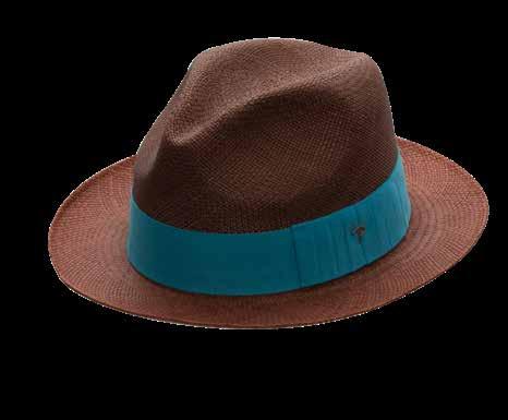 Intreccio fine e robusto per il fedora di PANIZZA 1879 in paglia a tesa piatta con cuciture a vista e nastro in gros-grain a contrasto. panizza1879.com