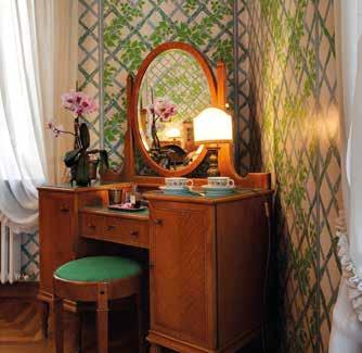 capitonné e plissettatura sullo schienale. La sala da pranzo ospita lo scenografico Glasgow, un imponente tavolo rettangolare arricchito da corde decorative, con top in vetro e struttura in metallo con finitura bronzata. Nella camera da letto, la palette cromatica nei toni del blu e del grigio utilizzata per il resto della casa e l’uso di materiali naturali, contribuiscono a creare un senso di intimità, mentre la presenza di lavorazioni raffinate esalta il decorativismo già presente nella carta da parati. Il letto Broadway, in particolare, presenta una raffinata lavorazione capitonné, espressione di uno stile senza tempo attualizzato dalle linee arrotondate e dai piedini inclinati a sezione quadrata. Completano l’insieme comodini e cassettiera della linea Sean, in legno Tay, con dettagli in finitura bronzata. gianfrancoferrehome.it