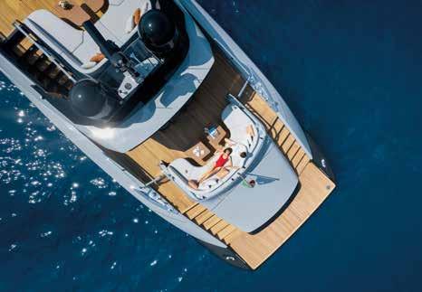This glamorous feature has even caught the eye of footballer Zlatan Ibrahimovic, who has been seduced by the tantalizing attractions of a safe island of his own with the purchase of a 34-metre Oasisdeck. Emboldened by this show of interest, Azimut recently launched Seadeck, the first seriesbuilt hybrid motoryacht to embody the idea of returning to nature through the use of technological solutions that cut emissions by 40% and the Fun Island, a reinvented stern area that embraces the sea in a new lifestyle based on family well-being. Choices driven by intensely practical considerations, not a desire to show off!