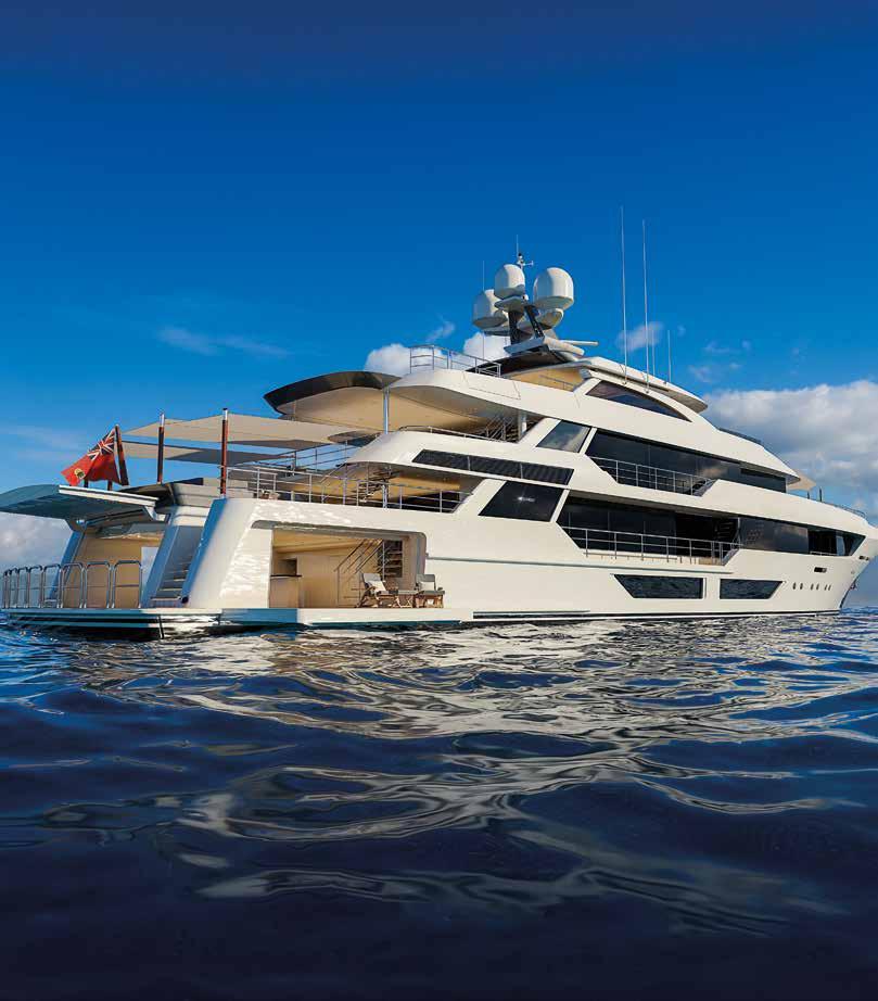 In the meantime, don’t miss the opportunity to take a virtual tour on the most beautiful megaycahts of the minute and all that they are bringing to the party. In the cover story of this issue, we take you aboard the CRN 52m CIAO where the emphasis is on generous open-air spac-es, developed in connection with the interiors. We also explore Attitude, the first 133’ in Baglietto’s seafaring domus-inpired DOM series. And last but very far from the least, we reveal Nyumba, Southern Wind’s first diesel electric hybrid yacht.