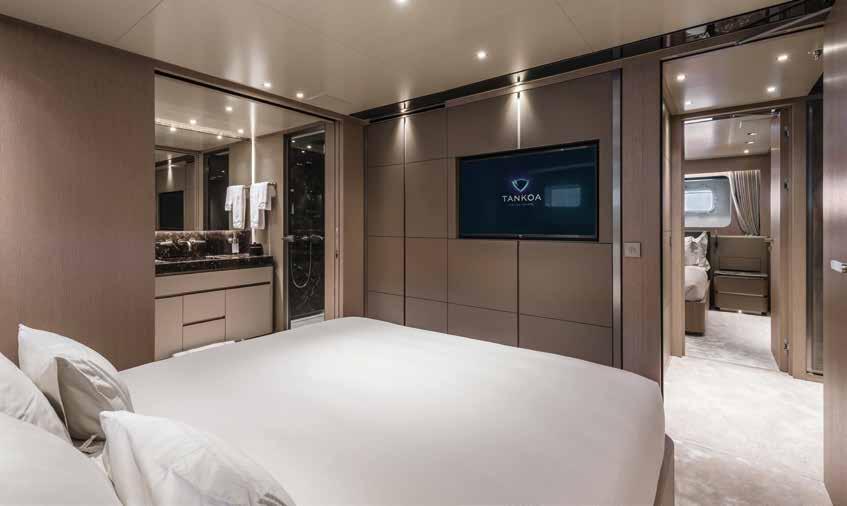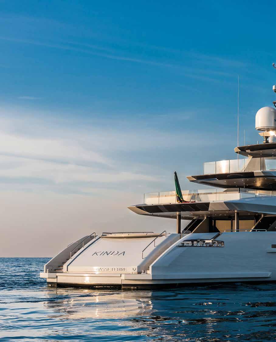 he 50-metre series is now the Tankoa’s flagship line. Genoa-based Tankoa describes itself as a “boutique yard” as it offers almost total personalisation, limited production runs, attention to quality and detail and the use of the most advanced technology. Presented at the 2022 Monaco Yacht Show, Kinda is the yard’s fourth 50-metre build – the fifth was launched this year and number six is currently under construction – and like her sister ships boasts, pure, decisive and dynamic lines. The yacht’s strong personality is reflected by the gently sloping lines of the bow section, descending to meet the high, vertical prow. The yachts in the series are based on the same naval platform, but they develop into unique objects that are shaped by the owner’s wishes. The exterior and interior design of the Kinda are by Francesco Paszkowski Design, with the collaboration of Margherita Casprini for the interior décor.