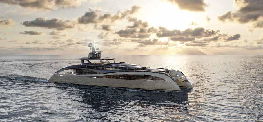 point of view is so original. “What I try to do is simplify yachts, I think designers are going slightly off-track at the moment. Every innovation that appears on a car or in any other sector soon turns up on a yacht. But you can’t transfer elements of life on land directly onto a yacht. Yachts are becoming more and more complex and expensive, and the shortage of manpower we’re experiencing today is resulting in longer lead times. I think this sector is becoming too involved and designers, too, are forced to adapt to the situation”. One of his latest projects for Rossinavi, the Sea Cat 40, currently under construction, is innovative and certainly complex. With a length of 42.75 metres, the catamaran is designed to sail round the world in a smart way – its electric propulsion is recharged by an extensive array of solar panels covering every possible surface and a smart AI system that optimises battery usage, making it