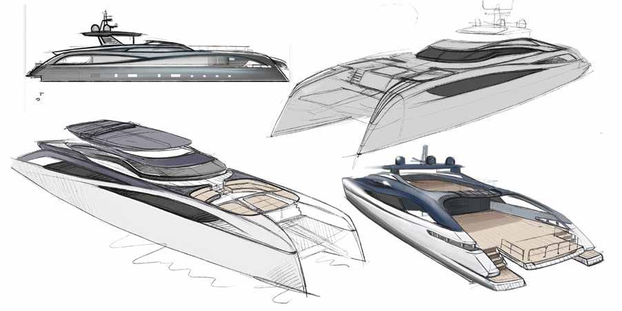 resulted in a first 56’ motor catamaran design. Construction of this model is due to commence in the very near future. They are now designing an Explorer yacht and the Cannes Yachting Festival 2023 will host the unveiling of a larger catamaran, around 40 metres in length. “About twenty years ago Piero Ferrari, who I’d just made a yacht for, said he’d like to bring me into Pininfarina, which at the time was collaborating with Ferrari, because it would be interesting to do something together. Nothing concrete came of it at the time, but I regard this collaboration as a discussion that began many years ago and has come to fruition today”.