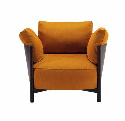 Above, the Amelie padded chair designed by the Spanish Yonoh studio for Nube Italia has an organic shape with rounded forms. The slightly reclined back provides reassuring and embracing support