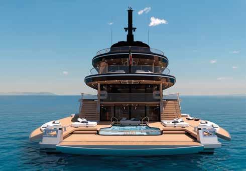 to maritime heritage while also embracing the future of modern yachting. The exterior design conveys strength and elegance, blending the rigour of naval authority with sleek, automotive-inspired lines. The interiors are conceived to enhance flow and connectivity, balancing privacy and openness to create an immersive onboard experience. A Japandi-inspired aesthetic, combining Japanese minimalism with Scandinavian warmth, defines the interior concept, delivering a serene and contemporary environment that elevates both form and function. hydrotec.it